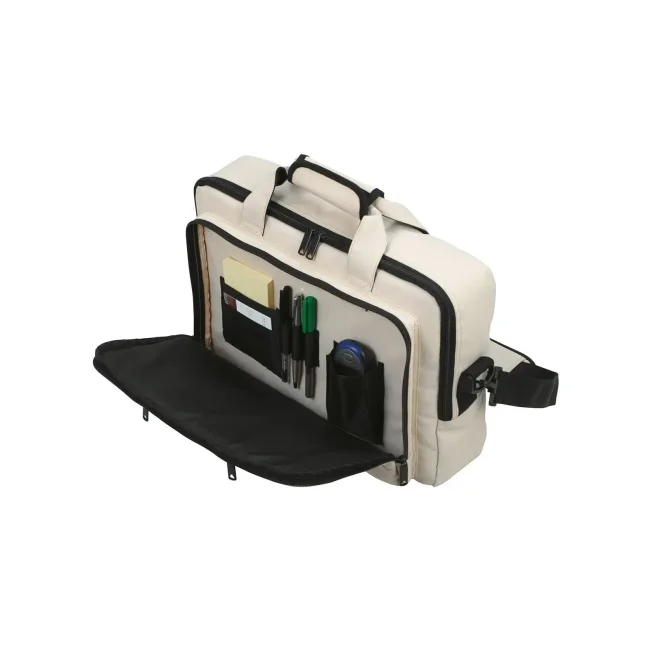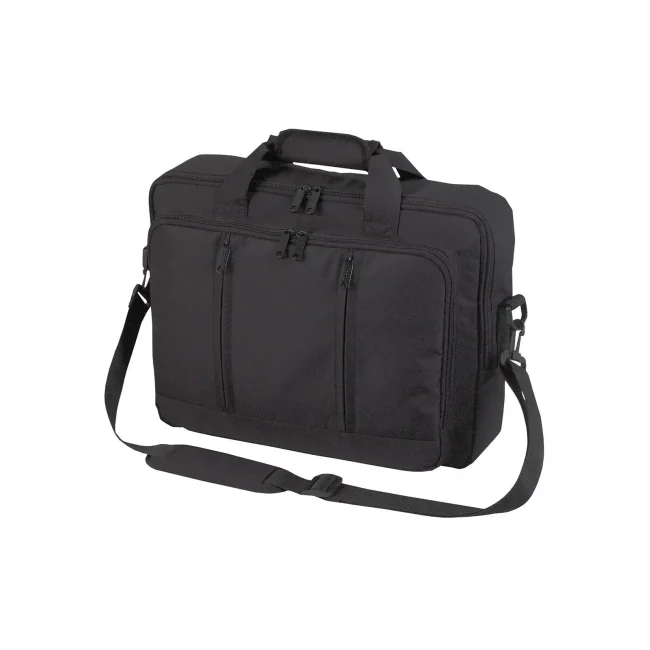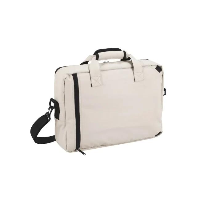 100% poliestere 300d. Borsa utilizzabile come tracolla o zaino, spalline dello zaino a scomparsa, tasche frontali con cerniera, scomparto principale imbottito con porta-notebook. Dimensioni: 39 x 27 x 10/14 cm, capacita': 12.5 litri, area di stampa: 6.5 x 12 cm.