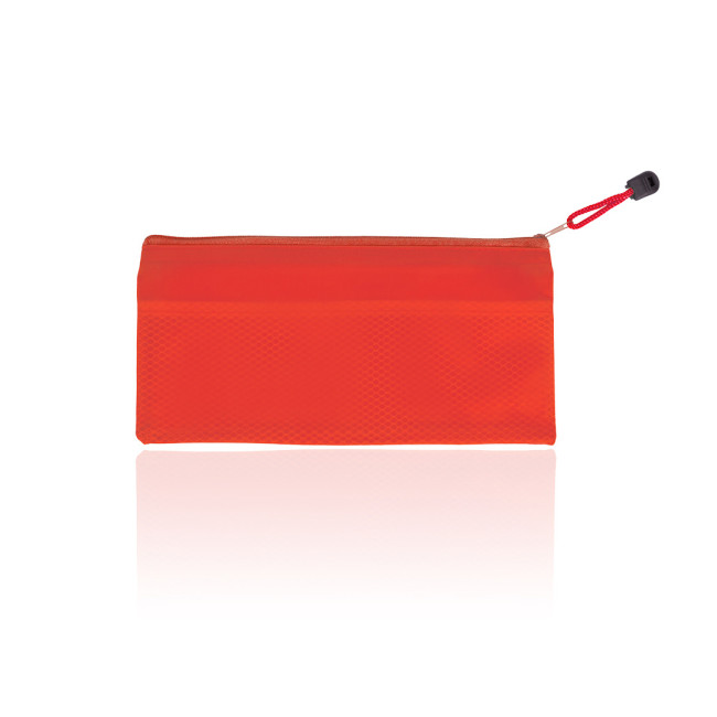 Astuccio con cerniera e corpo in morbido PVC in una vivace gamma di colori. Con tiretto coordinato sulla maniglia per facilitare l'apertura.