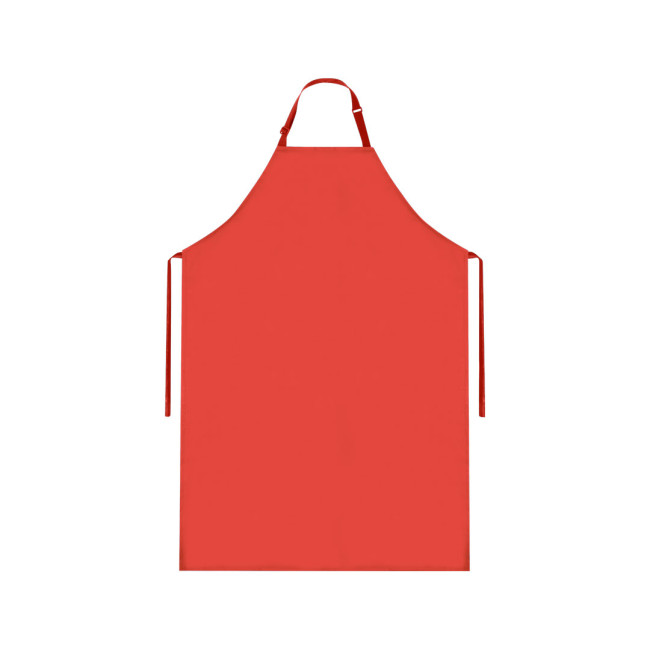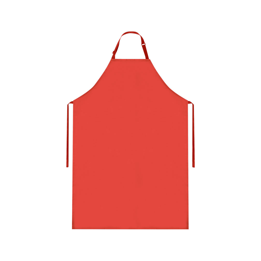 Grembiule impermeabile realizzato in poliestere da 320 g/m2 in combinazione con PVC, offre resistenza all'acqua e protezione efficace durante l'uso. Include nastri abbinati per il collo e la vita.