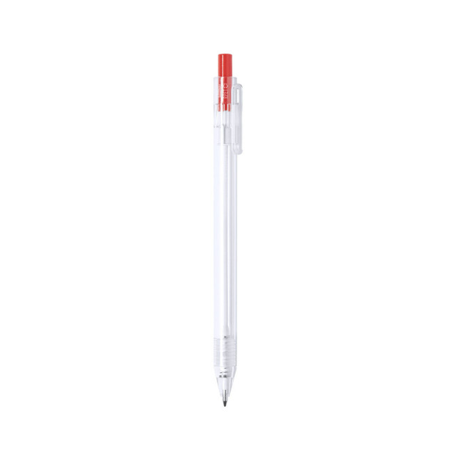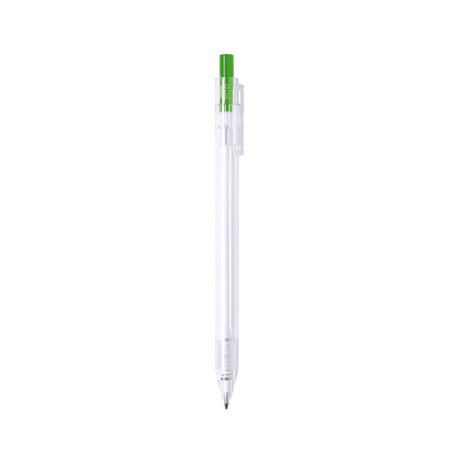 Penna della linea Natura in materiale RPET, realizzato in plastica riciclata per promuovere il riutilizzo dei rifiuti plastici e aiutare la sostenibilità del pianeta. Finitura trasparente con pulsante disponibile in una vasta gamma di colori, con logo RPET sul corpo della penna. Appositamente progettata per la stampa a tampone, meccanismo a pulsante e refill blu.