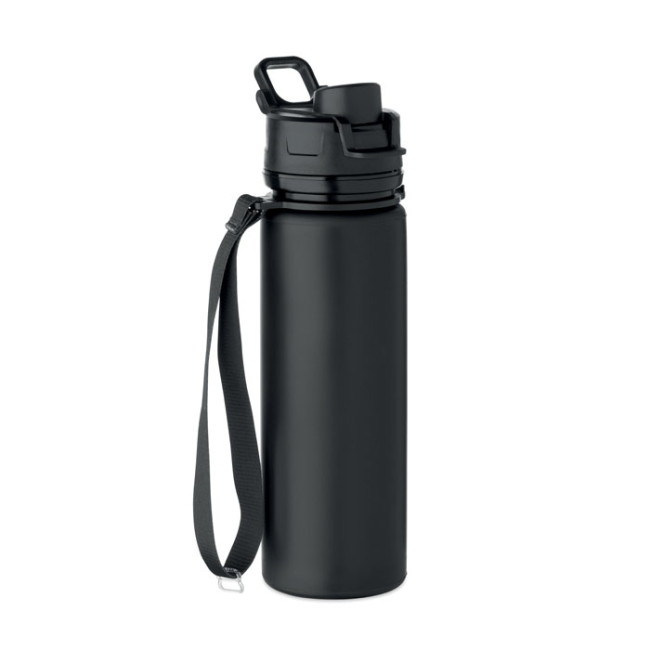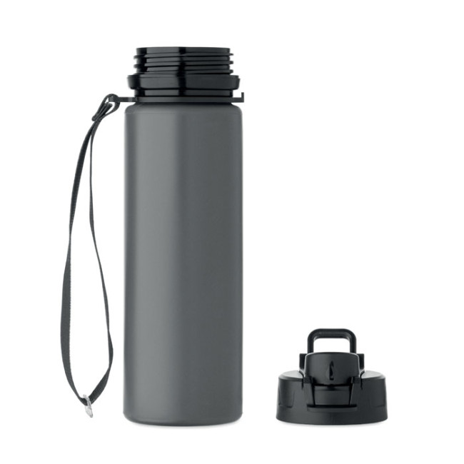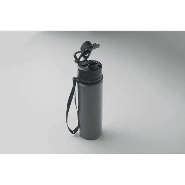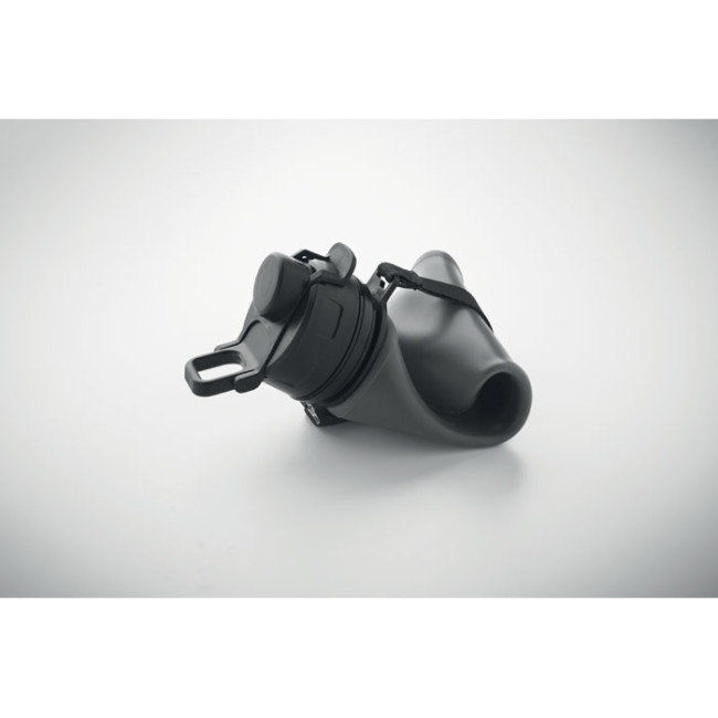 Bottiglia sportiva pieghevole in silicone con coperchio in PP, manico, cinturino in poliestere e fibbia trasparente per fissarla quando è piegata. Senza perdite. Capacità: 500 ml.