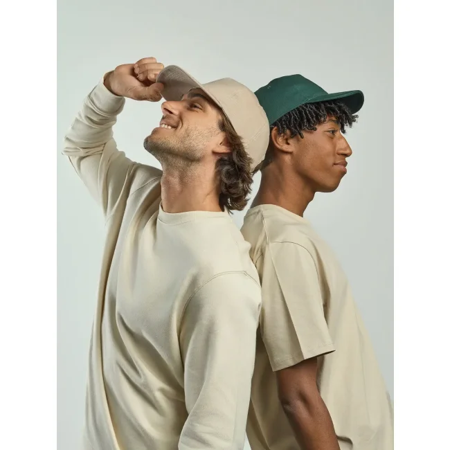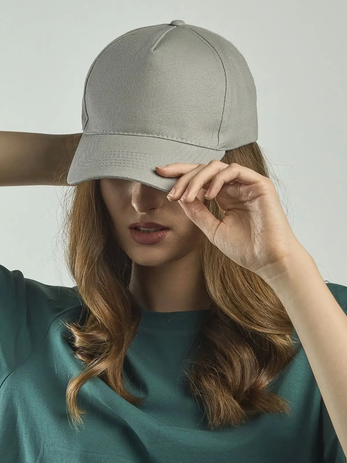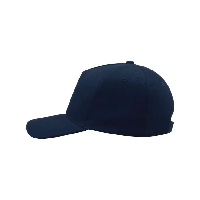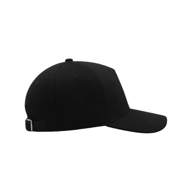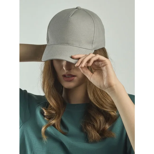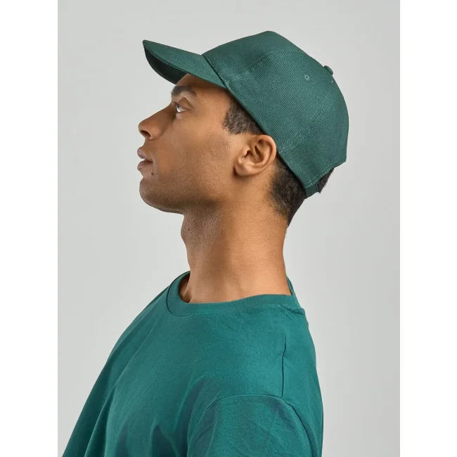 100% cotone. Cappellino a 5 pannelli, occhielli ricamati, pannello frontale rinforzato, visiera pre-curvata, chiusura con fibbia e foro cucito, ideale per la stampa, 6 cuciture su visiera, parasudore in poliestere, taglia unica.