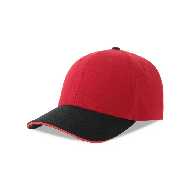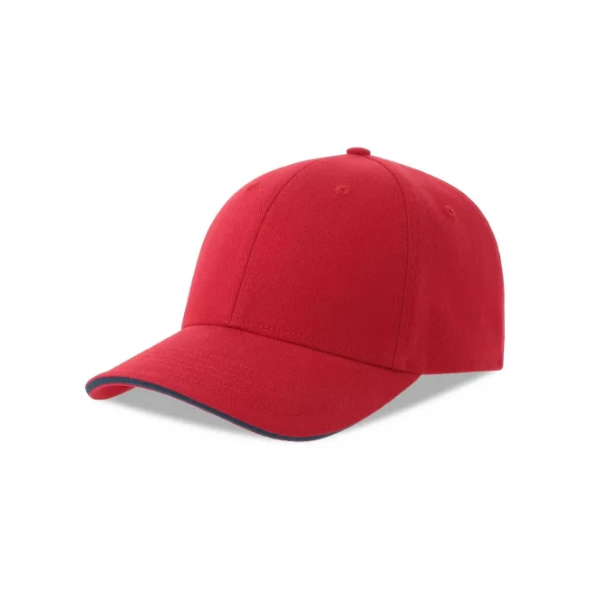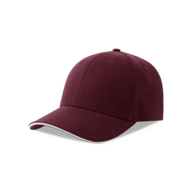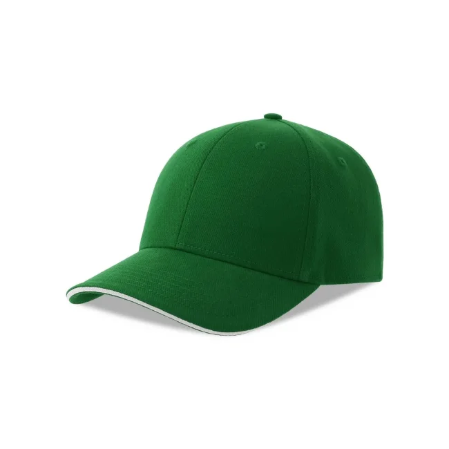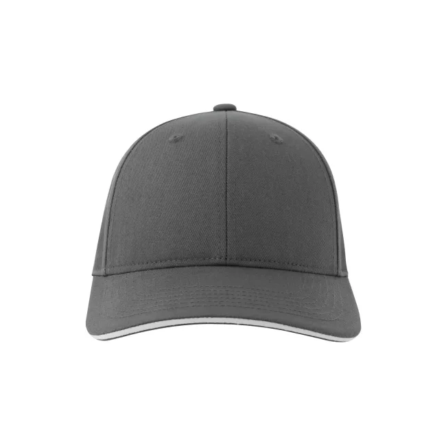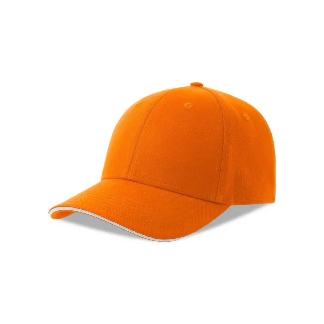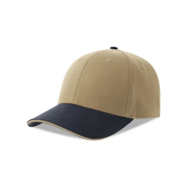 80% cotone organico twill pesante spazzolato, 20% cotone riciclato. Cappellino a 6 pannelli in cotone organico e riciclato, visiera tipo sandwich con inserto a contrasto, chiusura con cinturino passante su fibbia in metallo, occhiello ricamato, etichetta removibile, taglia unica.