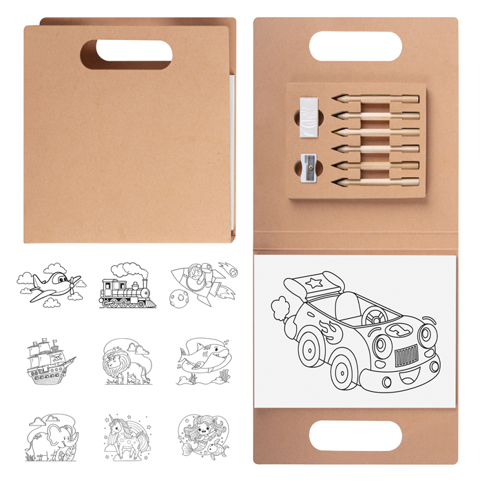 Set per colorare in carta Kraft 30 fogli con disegni da colorare 6 pastelli 1 gomma 1 temperino