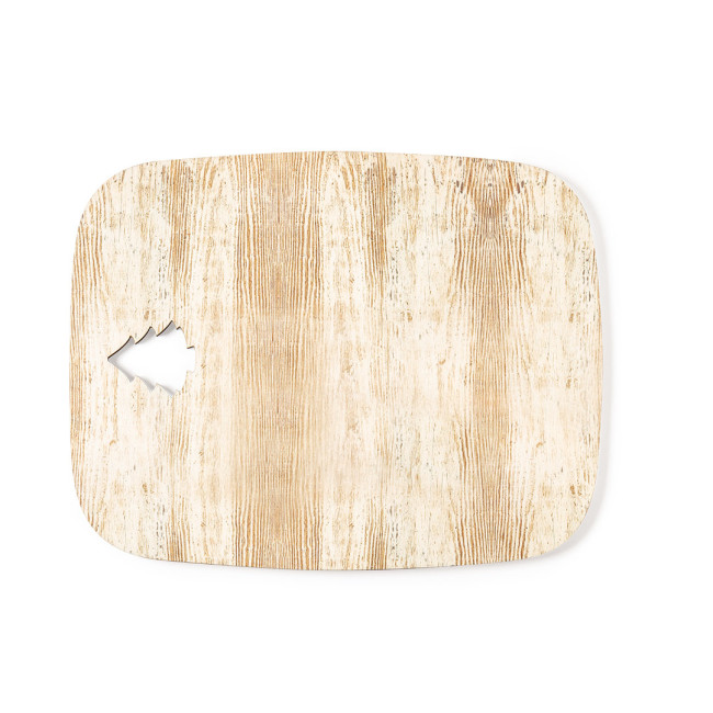 Tagliere/vassoio rettangolare con decorazione a forma di albero di Natale. Realizzato in legno naturale e con originale finitura bicolore. Ampia superficie per la stampa e logo Made In Europe.