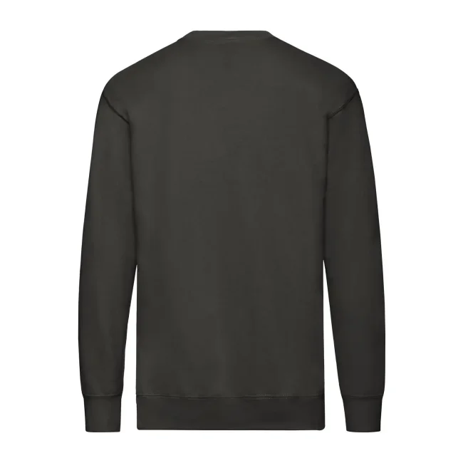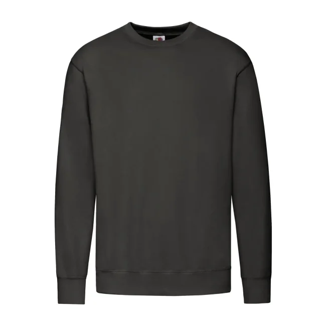 80% cotone Filato Belcoro, 20% poliestere. Felpa leggera sgarzata con maniche set-in. Collo, polsini e orlo inferiore in costina cotone/ Lycra. Struttura con busto tubolare. Etichetta removibile.