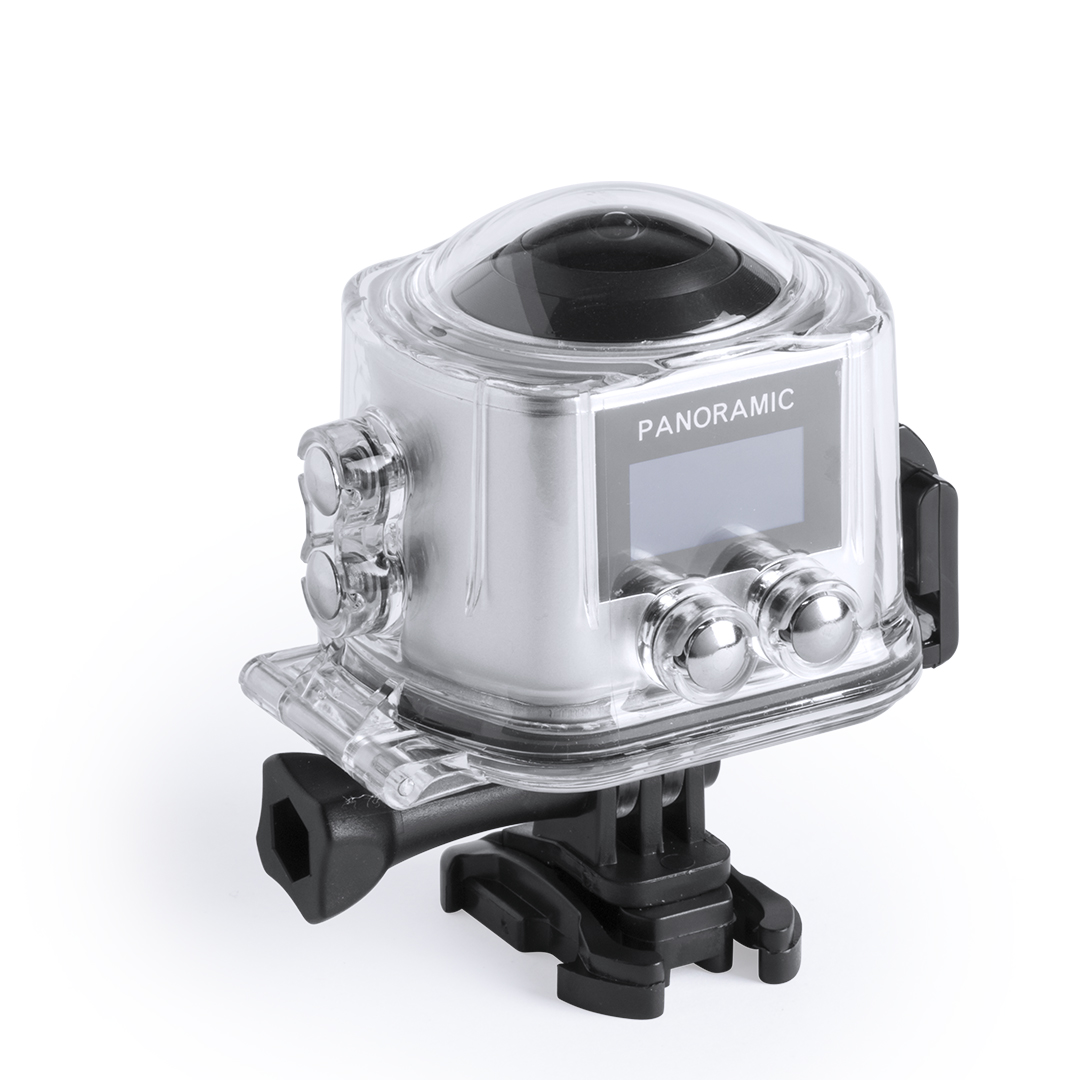 Telecamera sportiva a 360° di alta qualità con acquisizione video HD a 2448p, dal design compatto e robusto, appositamente progettata per un uso intensivo. Include una custodia impermeabile e una moltitudine di accessori per il fissaggio al casco, al manubrio o alla cintura, oltre a cinghie regolabili per la testa e il busto. La versatilità e la resistenza di questa videocamera sportiva la rendono il gadget perfetto per catturare, con una qualità eccezionale, qualsiasi attività sportiva o ricreativa a 360°. Con funzione Wi-Fi, telecamera Full HD 1080p, slot per schede micro USB con capacità fino a 64 GB, schermo LCD da 0,96 pollici, sistema multilingue e ricaricabile tramite cavo mini USB -incluso-. Presentata in una scatola dal design accattivante.