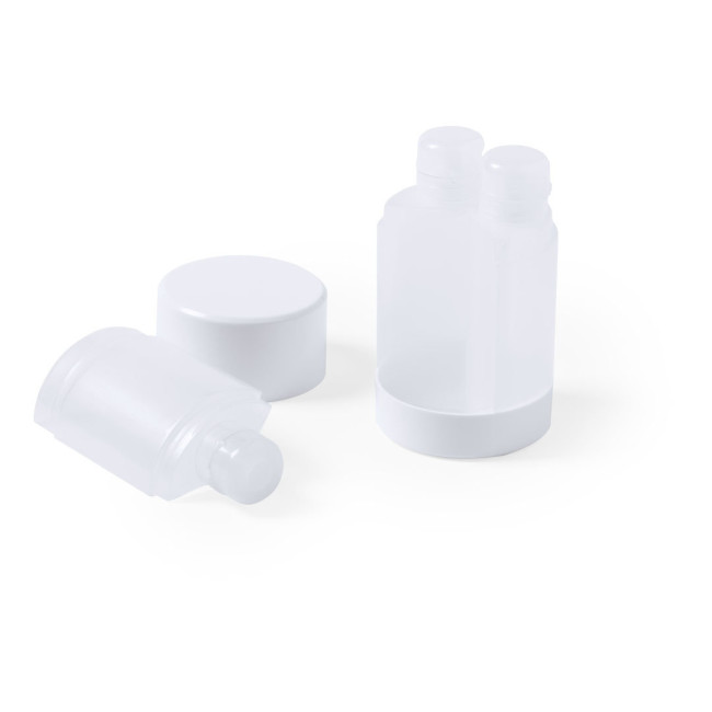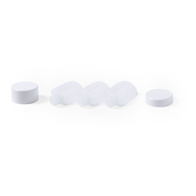 Set da viaggio di 3 accessori in PP resistente. Include 3 flaconi per gel e shampoo con chiusura ermetica. Presentato in una scatola di design originale.