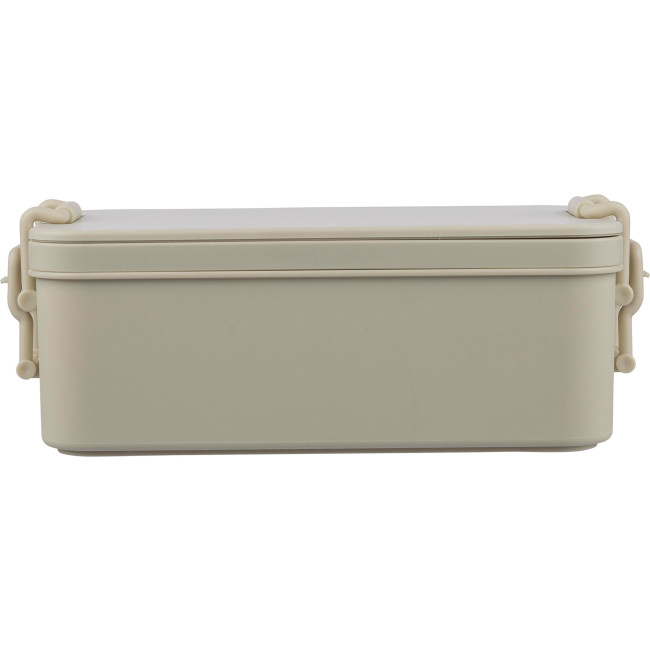 Lunch Box a due scomparti in PP con chiusura a clip e posate integrate
