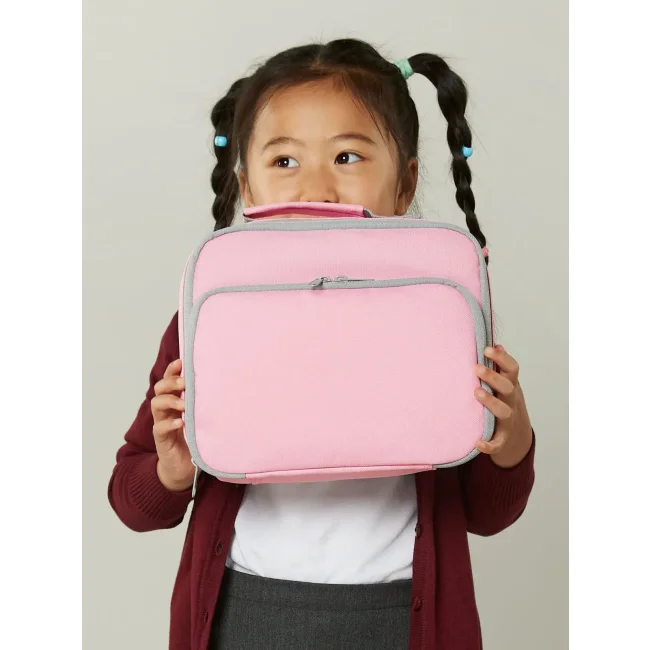 100% poliestere 600D. Borsa frigo con rivestimento in PEVA, tasca frontale esterna con cerniera per facilitare la decorazione, parte interna lavabile. Etichetta removibile. Dimensioni: 24 x 20 x 8 cm, capacita': 3 litri, area di stampa: 21 x 11 cm.
