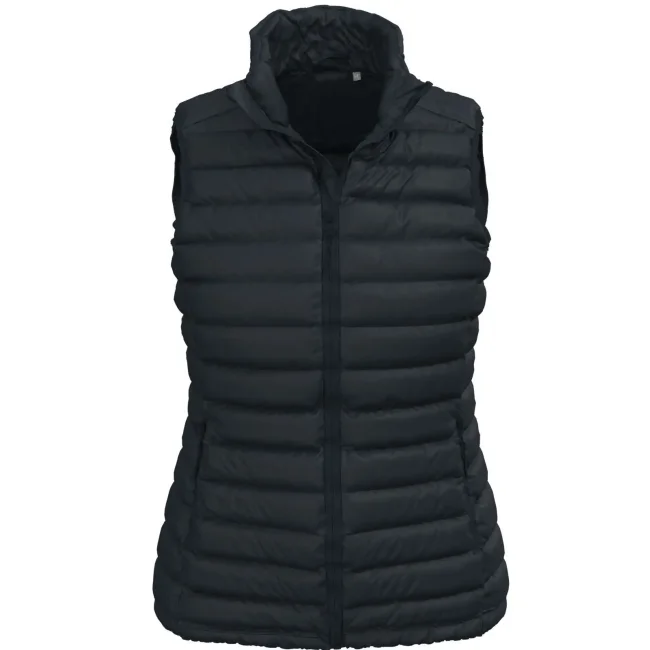 100% nylon, imbottitura: 100% poliestere. Gilet da donna, imbottito, richiudibile nella sua stessa tasca, accesso interno per facilitare il ricamo lato cuore e mezzaluna centrale sul retro per possibilità di personalizzazione, orlo inferiore regolabile, colletto alto antivento e tasche laterali con zip di alta qualità, tasca interna sul lato anteriore destro, etichetta premium con la taglia tessuta sul colletto ed etichetta di manutenzione strappabile sul fianco, senza fluoro e PFC.
