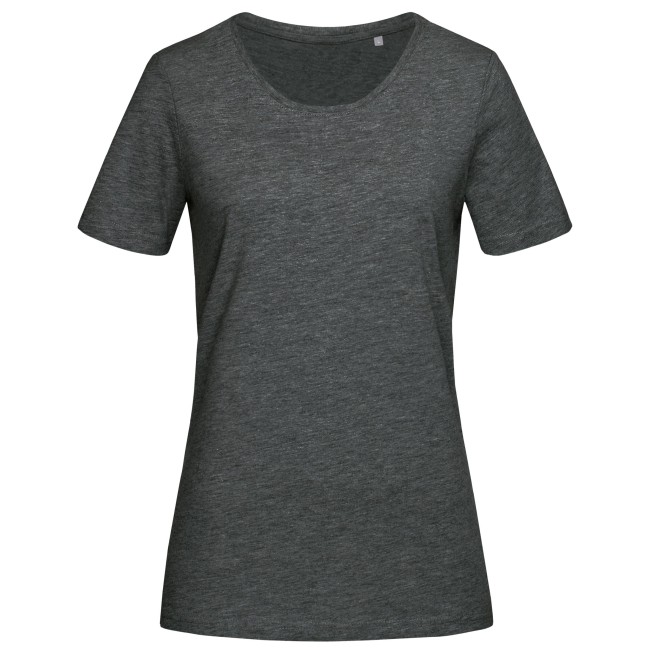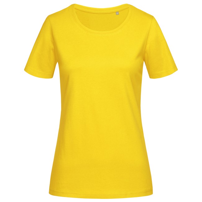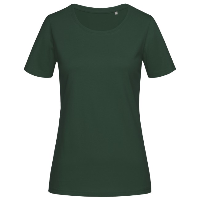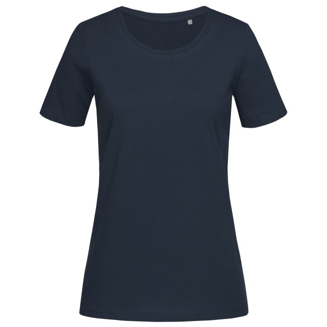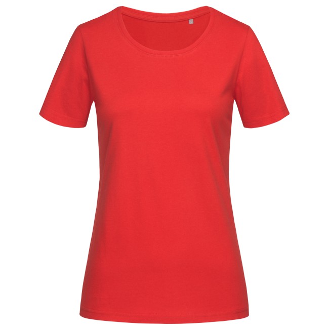100% cotone filato ad anelli pettinato, single jersey. T-shirt girocollo da donna, cuciture laterali per un taglio femminile ottimale. Cotone di qualità, ideale per qualsiasi tipo di stampa. Etichetta taglia in tessuto al collo, etichetta di lavaggio tear-away nella cucitura laterale.