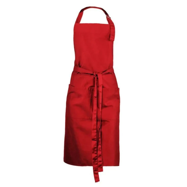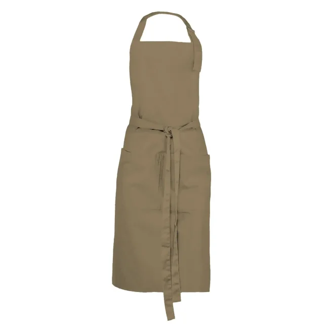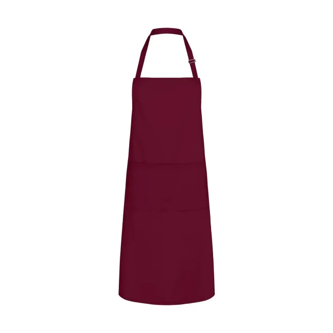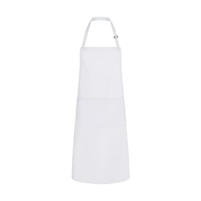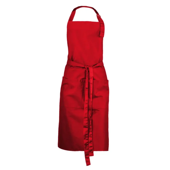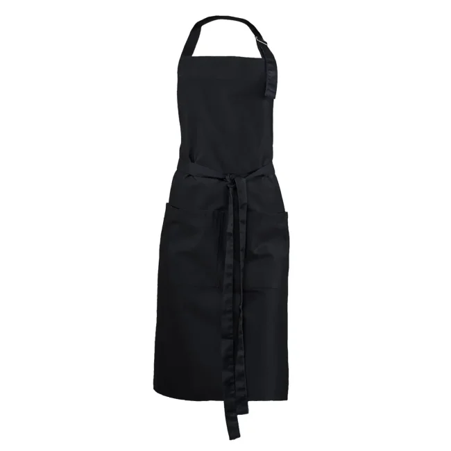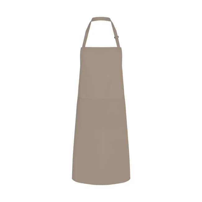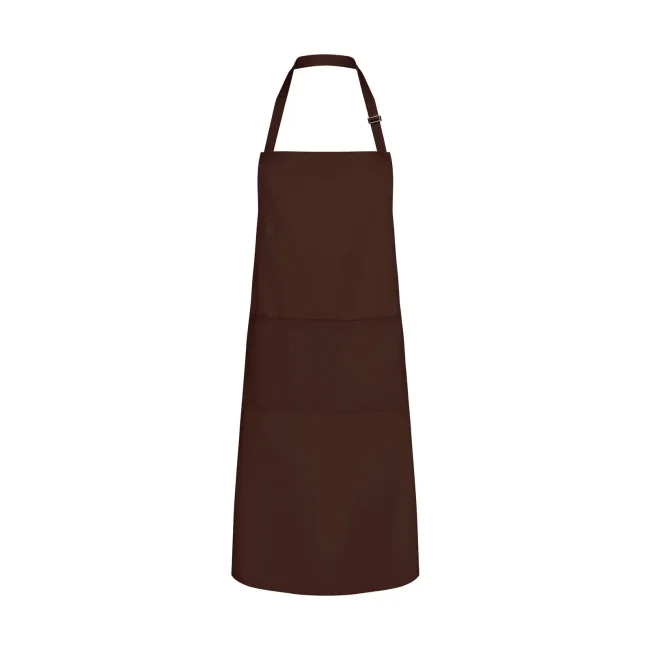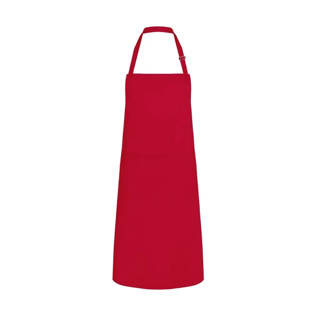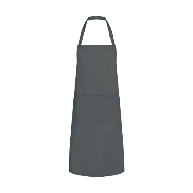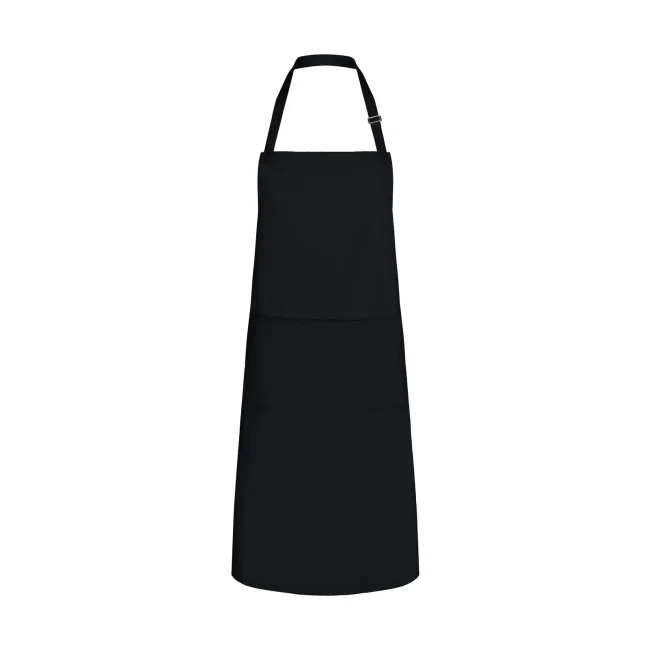 65% poliestere, 35% cotone. Grembiule con pettorina, ampia tasca frontale a 2 scomparti, regolabile con fibbia di metallo.