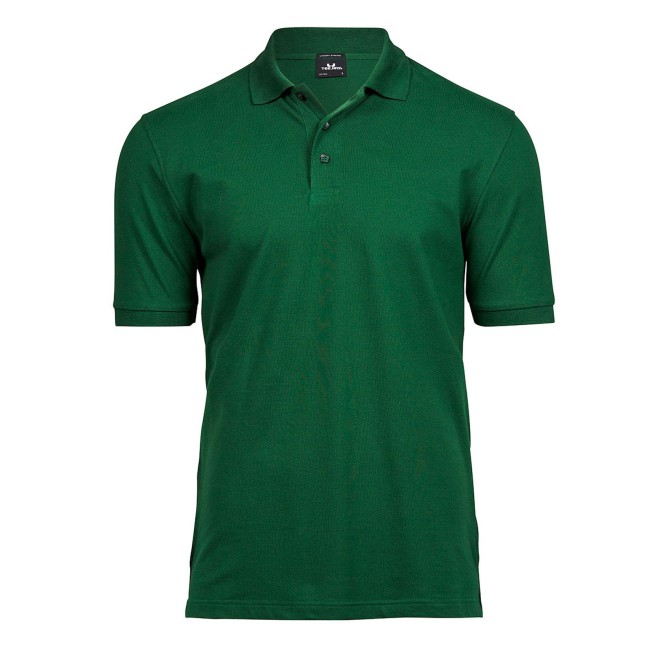 95% cotone organico ring-spun, 5% elastan. Polo a maniche corte set-in, tessuto mini piqué, colletto a costine in Lycra, nastro di rinforzo al collo, 3 bottoni tono su tono, struttura con cuciture laterali.