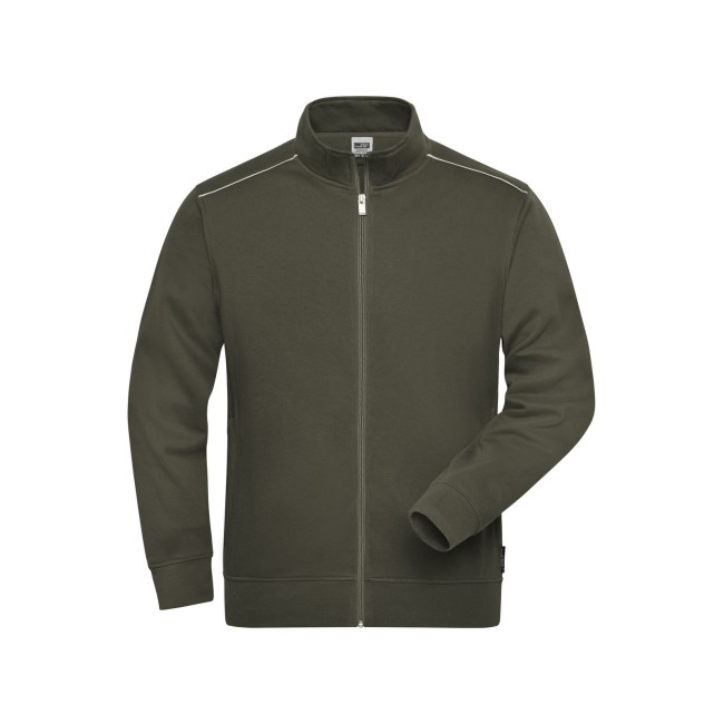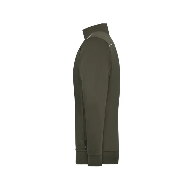 70% cotone, 30% poliestere. Felpa da lavoro con zip in tessuto misto cotone easy-care e poliestere, cotone ring-spun, felpata internamente, inserti contrastanti sul davanti e sul retro, bande a costine con elastan sui polsini e sul girovita, due tasche laterali con zip nascosta, zip YKK, lavabile a 60° C e ideale per asciugatura in asciugatrice.