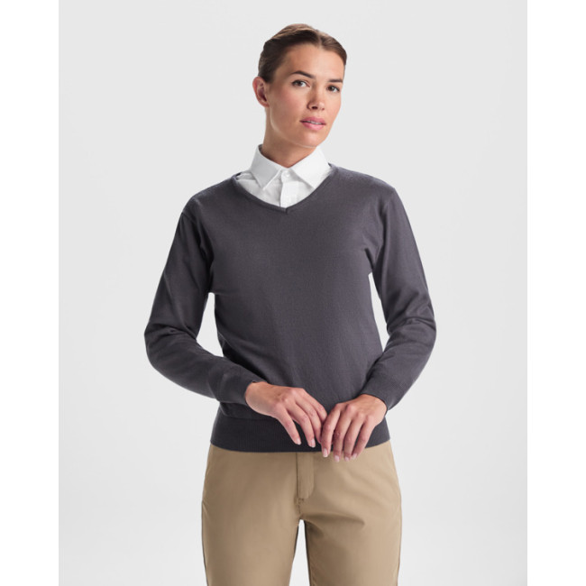 Maglioncino personalizzabile da donna HILUX con scollo a V e costine tono su tono