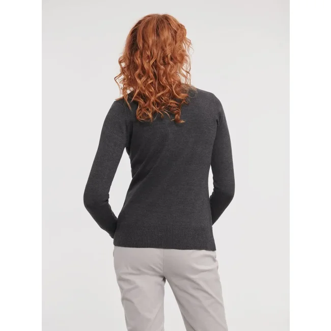 50% cotone, 50% acrilico. Pullover da donna con scollo a V, costina 1X1, polsini e girovita con elastane, maniche a giro, lavabile a 40°C. Cuciture laterali.