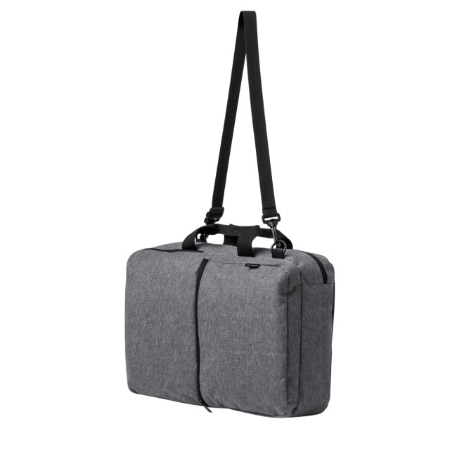 Zaino portadocumenti realizzato in resistente 600D RPET. Caratterizzato da un design urbano con tasca centrale con zip e doppio tiretto. Con interno imbottito per laptop fino a 15", tasca aggiuntiva con doppia chiusura a zip e tasca frontale. Gli spallacci e lo schienale sono imbottiti e regolabili per un maggiore comfort. Può essere trasportato in tre modi diversi: come zaino, grazie agli spallacci imbottiti; come portadocumenti, grazie al manico di trasporto imbottito; e come borsa a spalla, grazie alla lunga tracolla regolabile. È disponibile in tre colori eleganti e si presenta in modo sofisticato in una borsa riciclata individuale.Il materiale RPET è ottenuto da plastica riciclata, promuovendo così il riutilizzo dei rifiuti plastici e contribuendo alla sostenibilità del pianeta