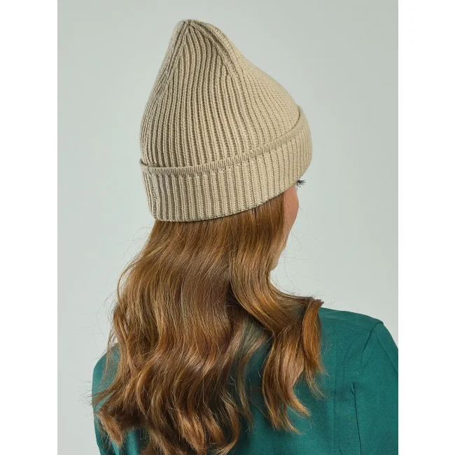 100% Polylana® . Berretto rifinito con risvolto a costine elegante, tascabile, fibre ottenute da bottiglie di plastica riciclate. Etichetta removibile.