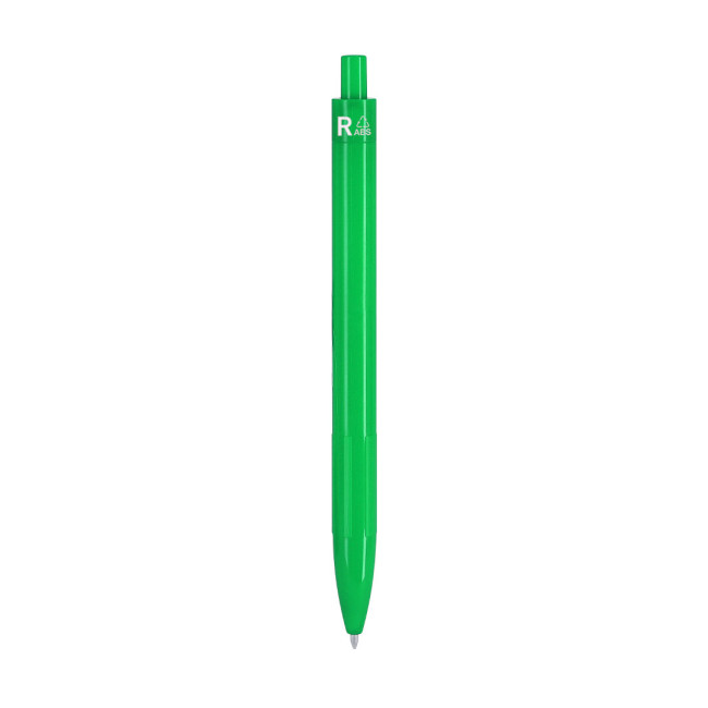 Penna fatta di RABS. Clip meccanismo a pulsante con inchiostro blu. Distintivo RABS in cima alla penna.