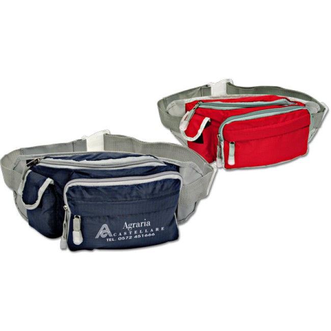Marsupio finiture grigio chiaro, con 3 tasche, pratico portacellulare con chiusura in velcro. Confezione in polybag.