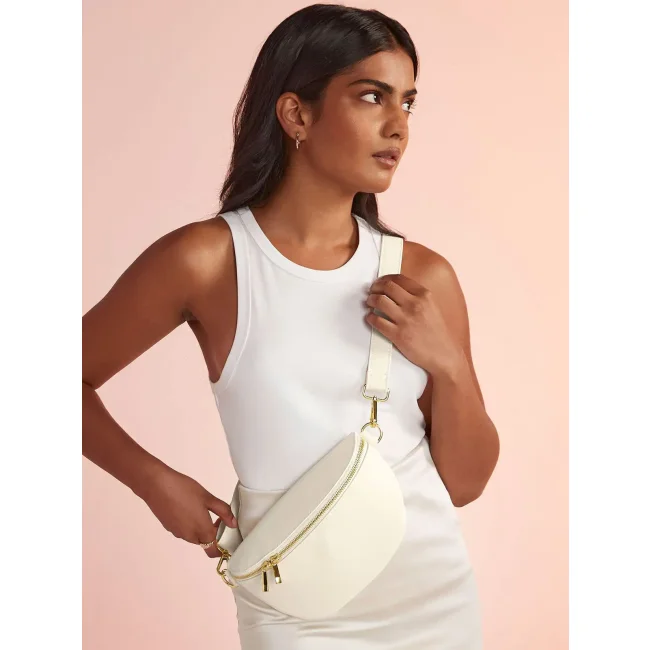 Marsupio Boutique in PU riciclato con cerniera oro lucido e tracolla regolabile