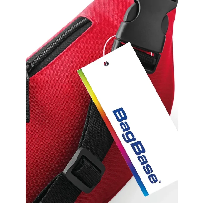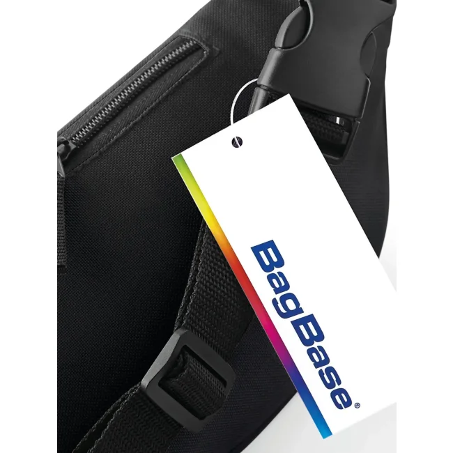 Marsupio Belt Bag realizzato in 100% poliestere 600d, dotato di cinghia regolabile per un comfort ottimale. Include un'etichetta removibile per una personalizzazione semplice. Le dimensioni sono 38 x 14 x 8 cm, con una capacità di 2.5 litri e un'area di stampa di 18 x 7 cm per branding.