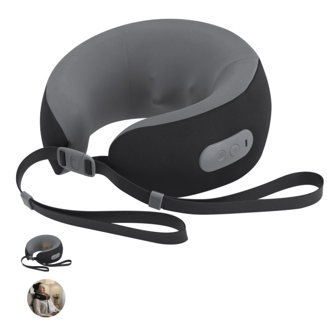 Massaggiatore portatile al collo progettato per offrire un'esperienza di comfort durante i viaggi. Dotato di chiusure a fibbia per una calzata corretta e confortevole, include un pulsante ON/OFF/SWITCH con indicatore luminoso. La copertura in poliestere protegge il dispositivo durante il trasporto, mentre la batteria ricaricabile da 1.200 mAh con ingresso TypeC garantisce praticità.