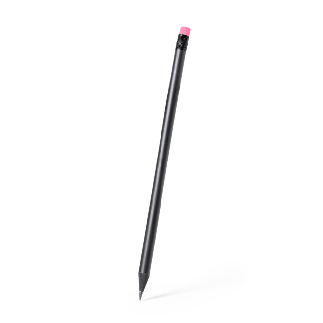 Matita nera elegante in legno naturale, dotata di una pratica gomma e punta affilata per scrivere e disegnare con precisione. Disponibile in vari colori, è un accessorio utile e sostenibile.
