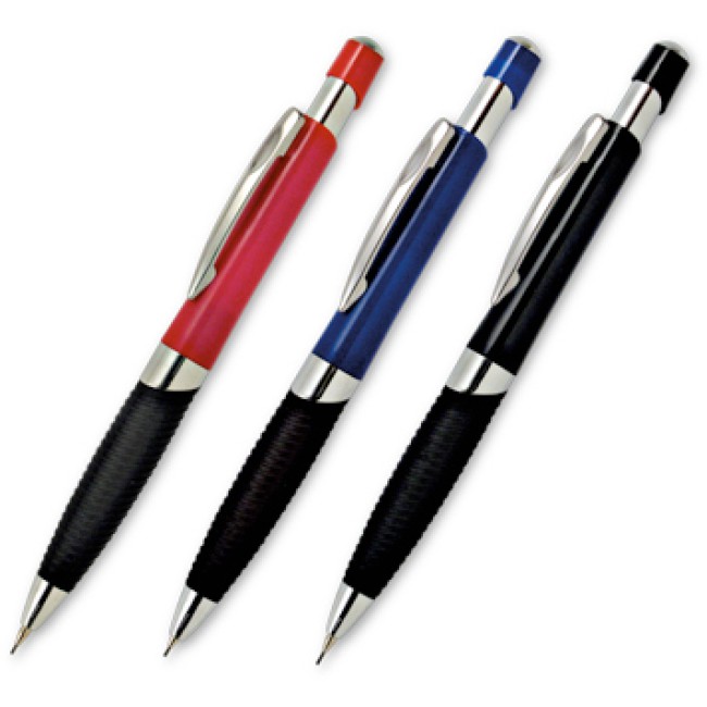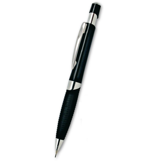 Matita micromina 0,7 mm, fusto in plastica ABS, impugnatura gomma nera, particolari cromati.