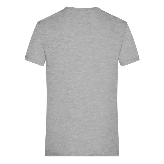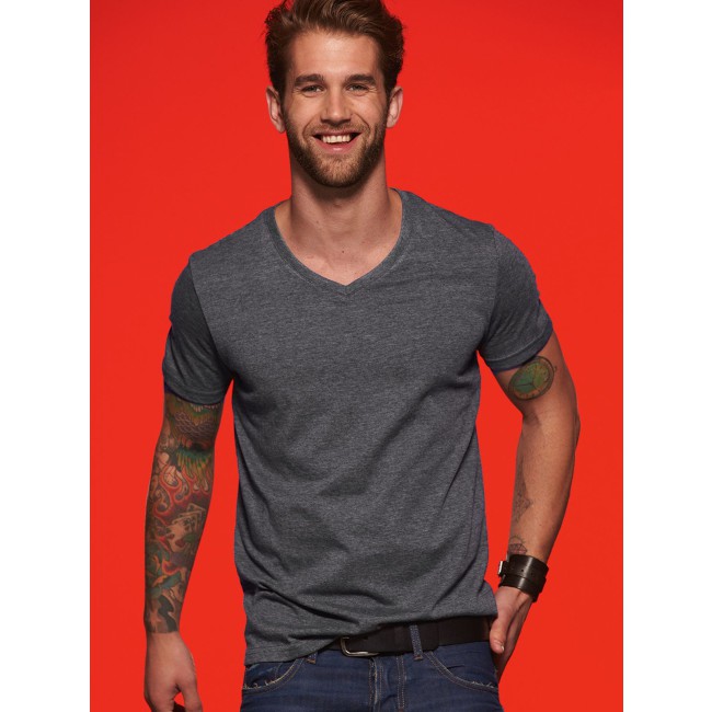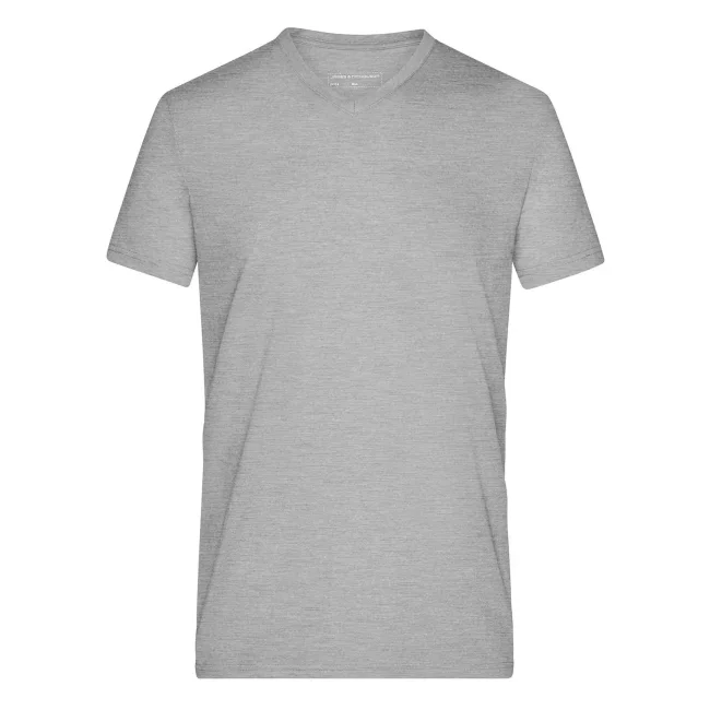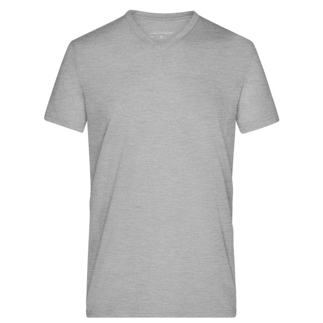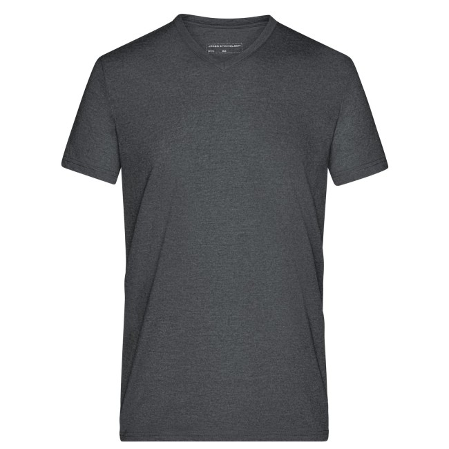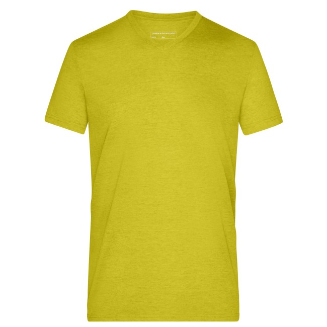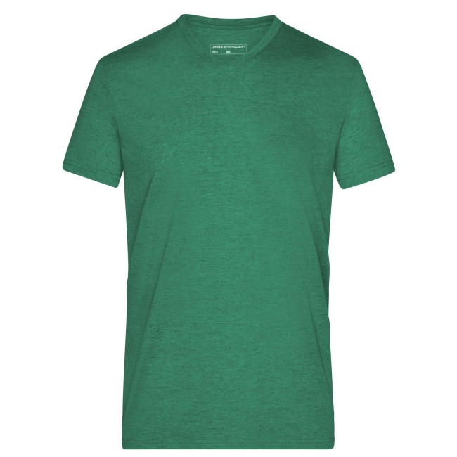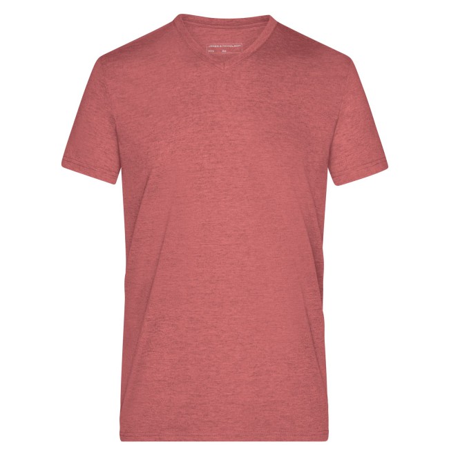 65% poliestere, 35% cotone. T-shirt alla moda con scollatura a V Melange di single jersey di alta qualità. Taglio disinvolto e comodo, Collo a V con elastan, Tessuto esterno (170 g/m²).