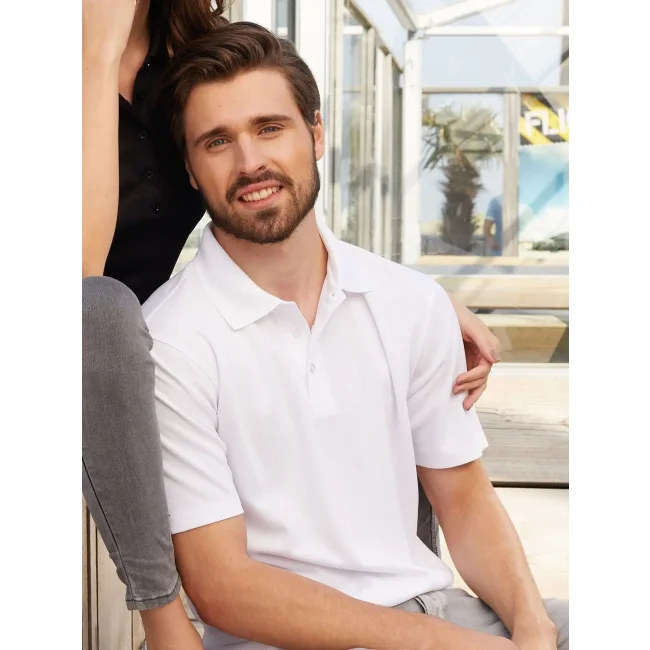 100% poliestere. Polo a 3 bottoni per il tempo libero e lo sport. Traspirante, regola l'umidità e asciugatura rapida, protezione 25+ dai raggi UV, colletto polo a maglia, fettuccia al collo, bottoni tono su tono, etichetta removibile.