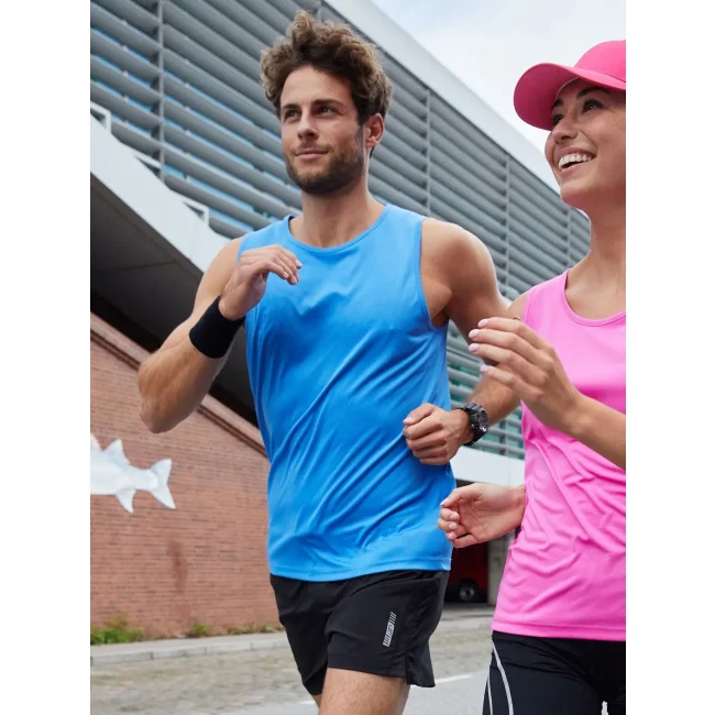 100% poliestere, 150 g/m2. Canottiera funzionale per lo sport e il tempo libero in single jersey, colletto e giromanica con bordino. Traspirante, con regolazione dell'umidità, ad asciugatura rapida.