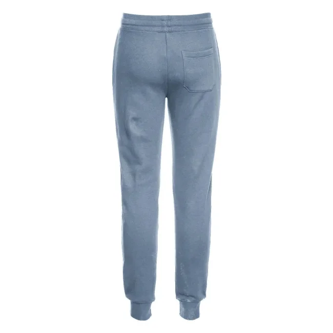 80% cotone pettinato ring-spun, 20% poliestere. Pantaloni dal taglio contemporaneo, due tasche a filetto dello stesso tessuto con zip a scomparsa, tasca posteriore con toppa, cordoncino piatto in vita con asole ad occhiello, polsino e vita a costine, felpati internamente.