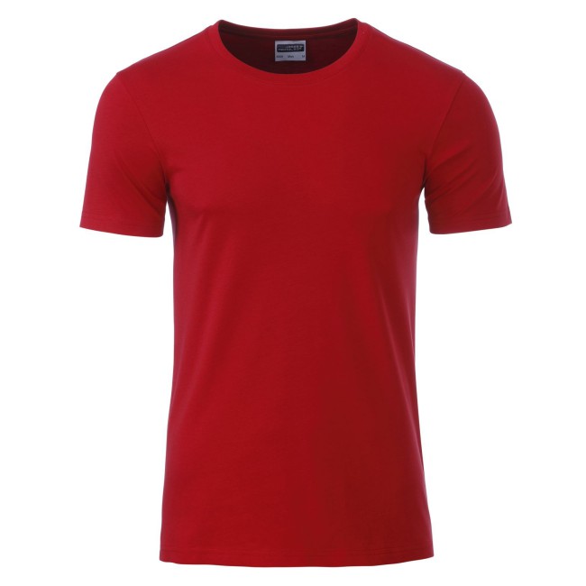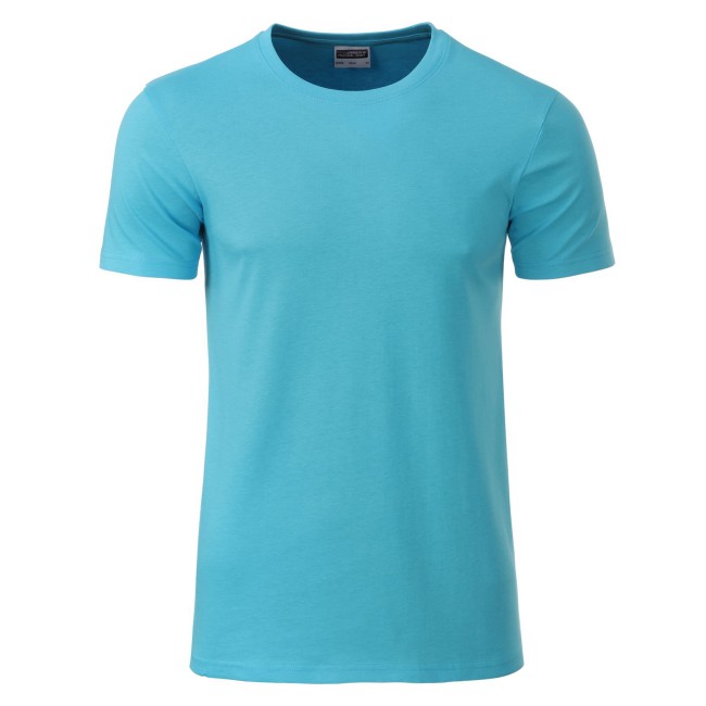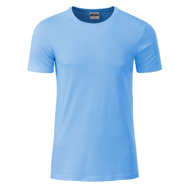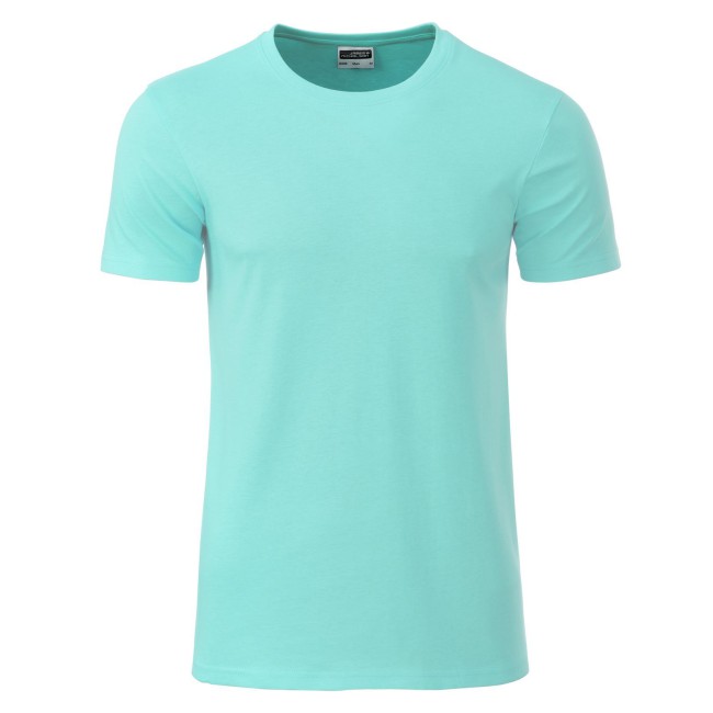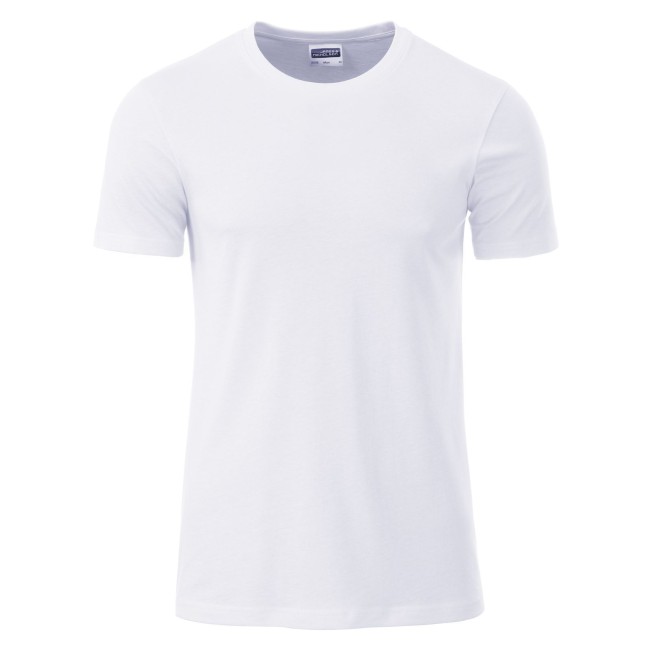 100% cotone organico. single jersey. T-shirt girocollo classica con elastane, etichetta strappabile, struttura con cuciture laterali.