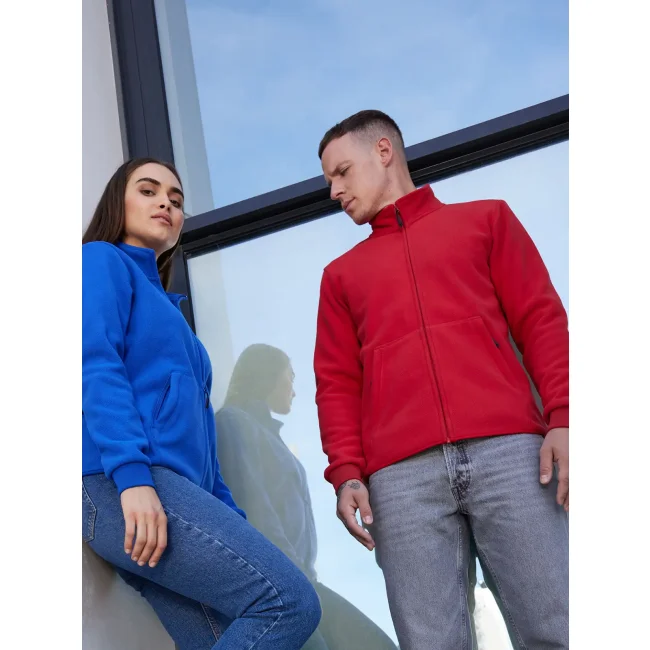 100% poliestere. Pile a 2 strati con anti-pilling (su entrambi i lati), zip a tutta lunghezza, collo alto, tasche a canguro con zip nascosta, orlo con elastan, zip: YKK