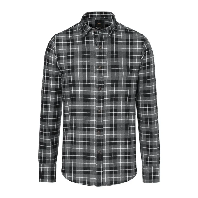 65% poliestere, 35% cotone. Camicia da uomo in stile urban e moderno design a quadri, perfetta combinazione di eleganza classica e trendy stile street wear, tessuto morbido sulla pelle, elevata resistenza al lavaggio contro lo sporco più ostinato, vestibilità slim fit (taglio stretto in vita), carré, colletto all´italiana, maniche lunghe, polsino sportivo arrotondato con due bottoni adiacenti per regolare la circonferenza del polsino, orlo arrotondato. Lavaggio a 60°C.