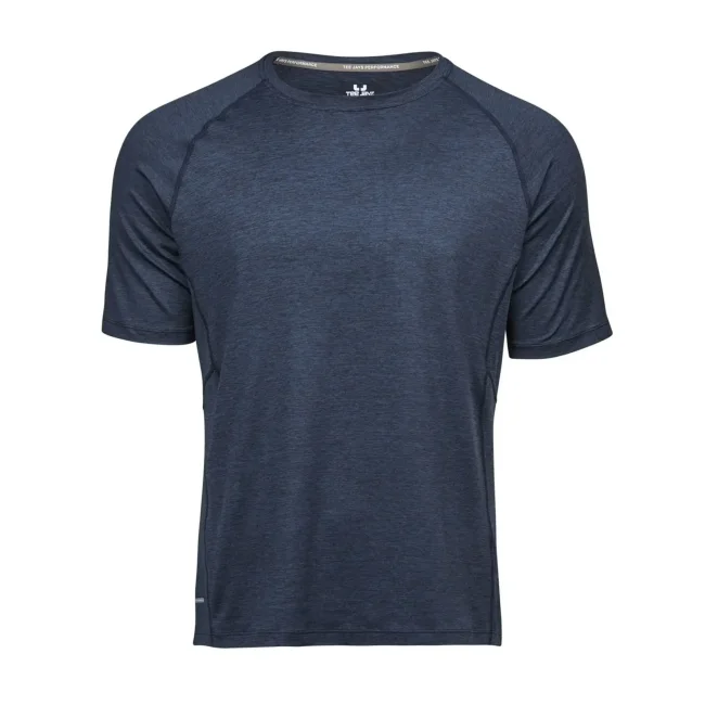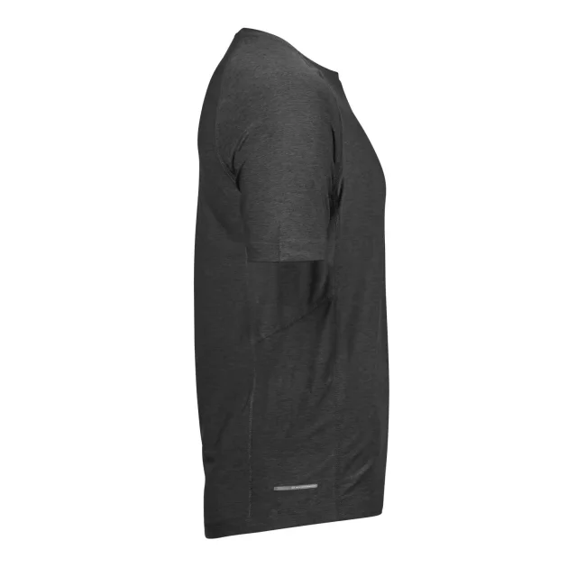 95% poliestere (tessuto CoolDry), 5% elastan. T-shirt sportiva uomo, tessuto morbido e leggero, traspirante, a rapida asciugatura, cuciture flatlock, stampe riflettenti, fit sportivo.