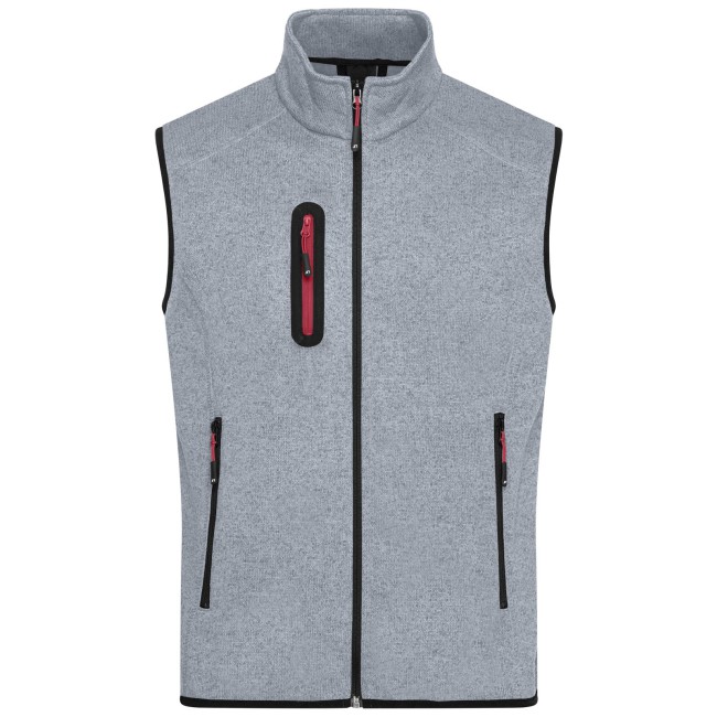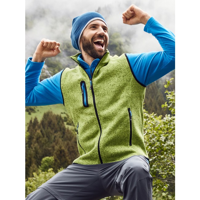 100% poliestere. Soffice, caldo e con finitura easy-care, all'esterno appare come lavorato a maglia, internamente felpato. Sottili cuciture divisorie, Tasche laterali con zip, taschino lato cuore, Inserti a contrasto sull'orlo e sulle maniche