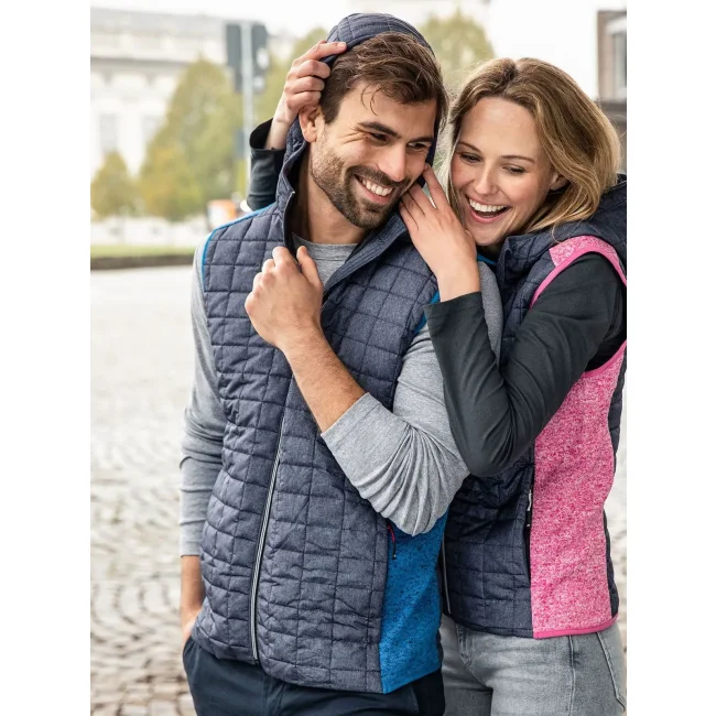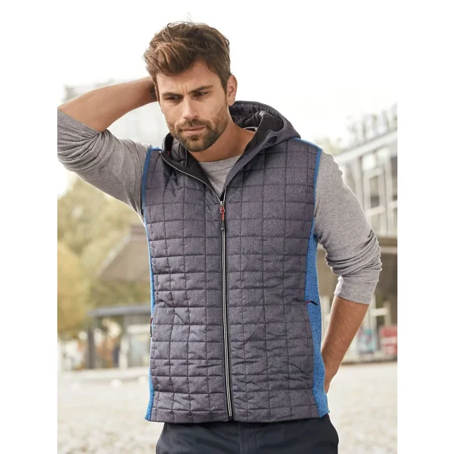 Tessuto esterno: 100% poliestere, rivestimento: 100% poliammide, imbottitura: 100% poliestere. Gilet in tessuto morbido e caldo, look melange, cappuccio regolabile internamente, chiusura con zip, tasche laterali con zip, 2 tasche interne.