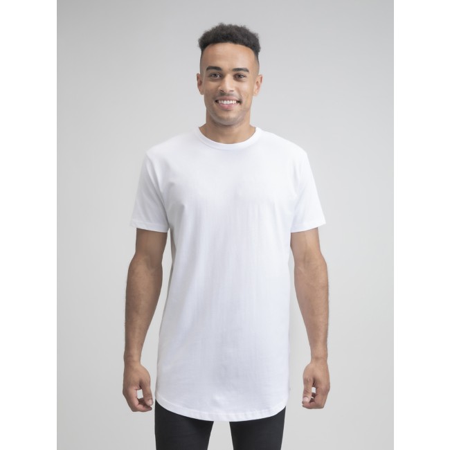 100% cotone organico single jersey. T-shirt extra lunga, set-in, orlo arrotondato, vestibilità ampia e moderna, girocollo, etichetta strappabile, struttura con cuciture laterali.