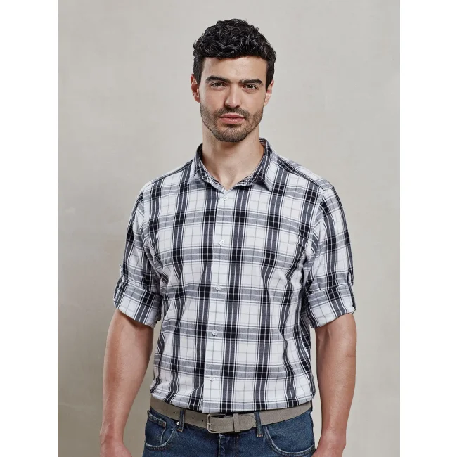100% tessuto in filo di cotone. Camicia uomo a maniche lunghe con linguetta interna creata per poter rimboccare e chiudere la manica arrotolata sull'avambraccio. Vestibilita' medium fit.