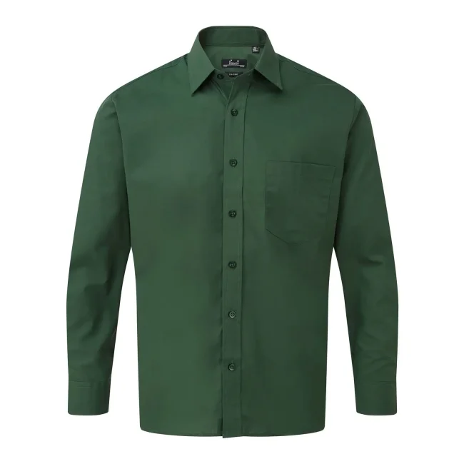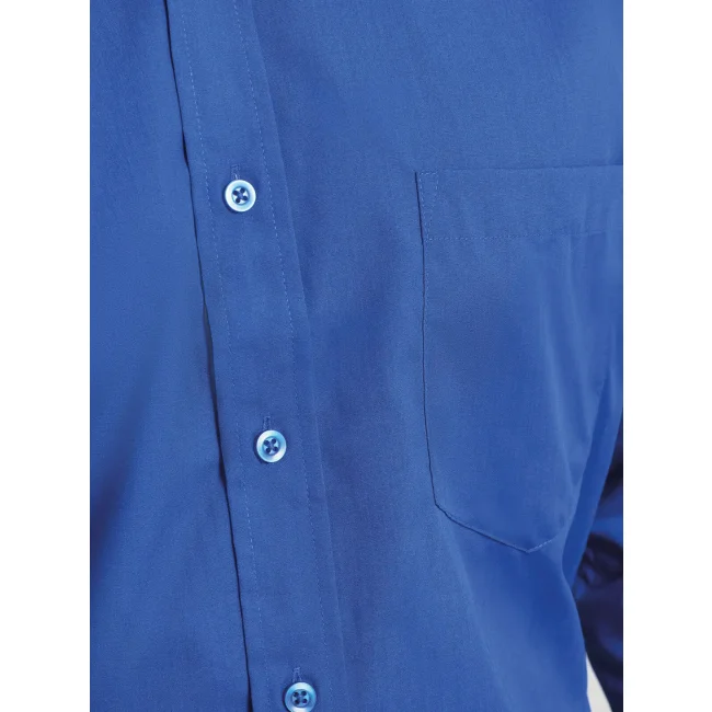 65% poliestere, 35% cotone. Camicia a maniche lunghe in popeline, bottoni sui polsini, taschino lato cuore.