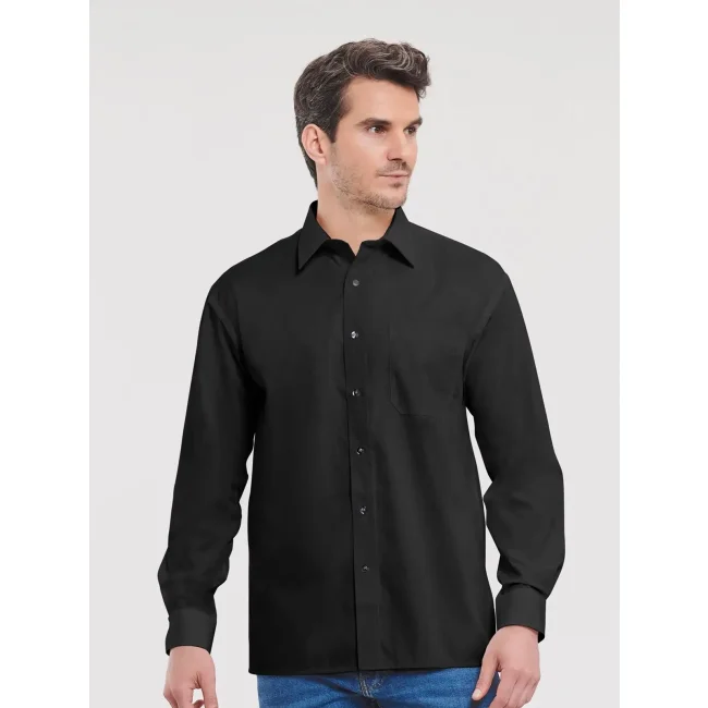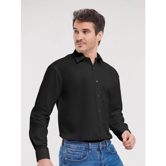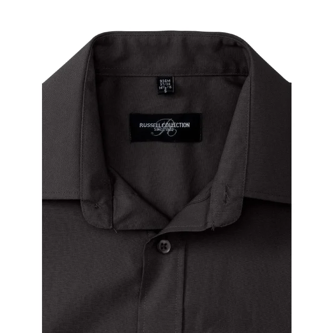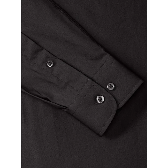 100% cotone. Camicia in popeline con colletto con stecche, polsino stondato regolabile con due bottoni. Taschino lato cuore, orlo dritto. Bottone di riserva.