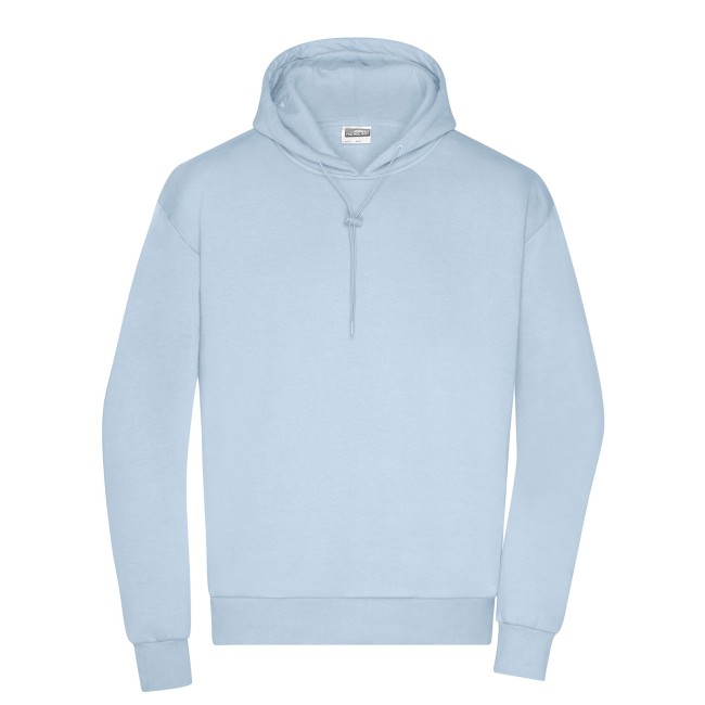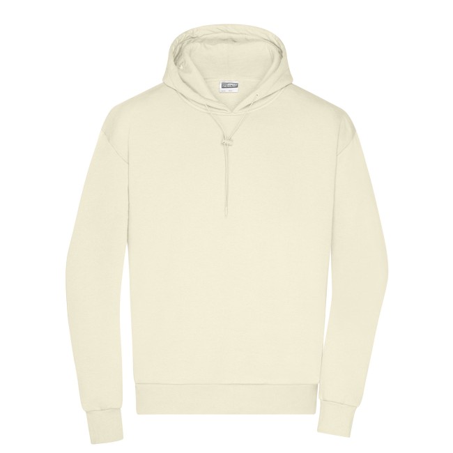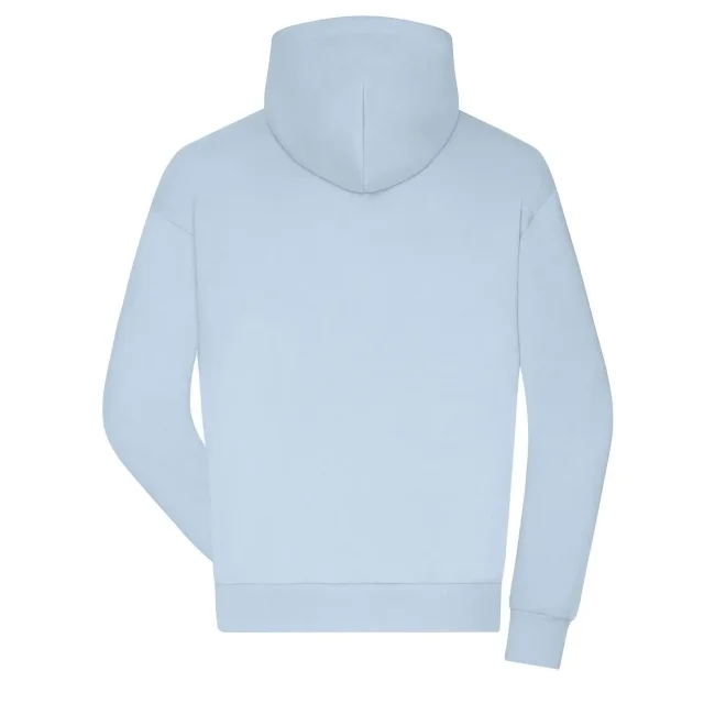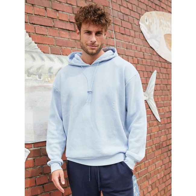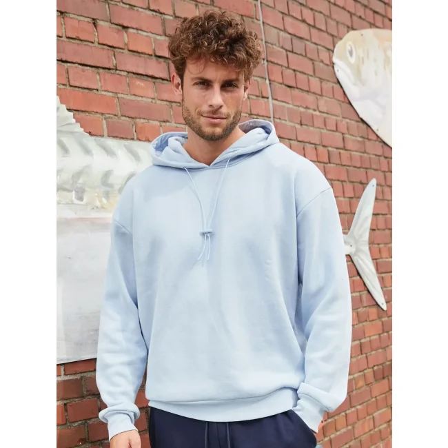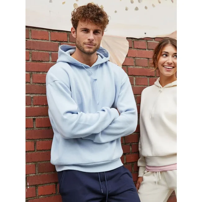 85% cotone organico 15% poliestere. Felpa con cappuccio oversize, tessuto di alta qualità, felpata internamente. Cappuccio doppio strato con cordino regolabile, polsini con elastan. Etichetta Tear-off.