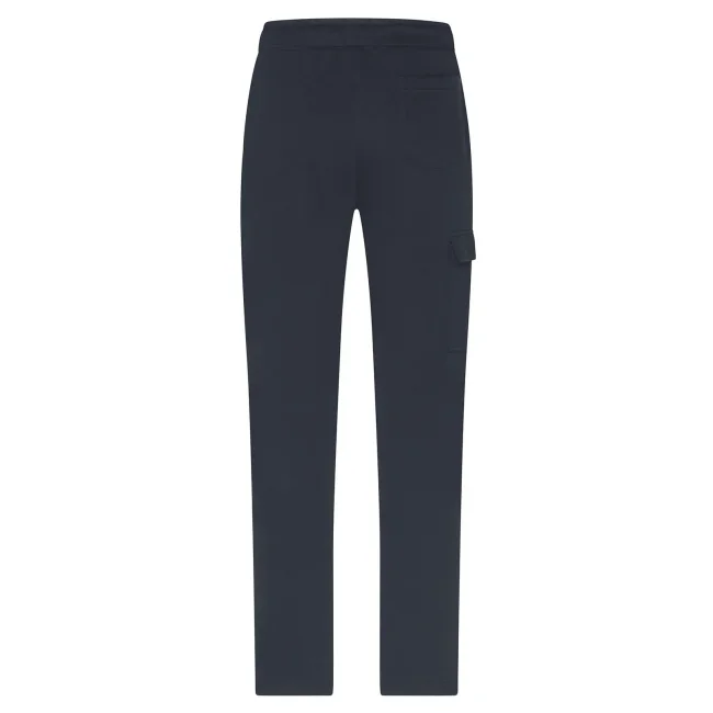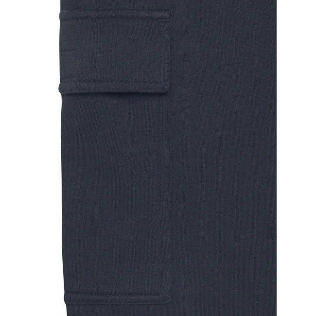 85% cotone, 15% poliestere. Pantaloni in tuta, French Terry di alta qualità, vita elasticizzata con cordino, 2 tasche laterali, 1 tasca posteriore, 1 tasca cargo sulla gamba destra con chiusura in velcro.