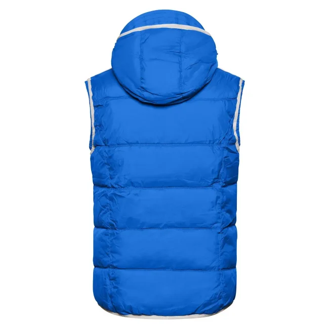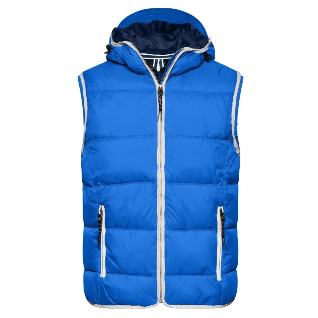 100% poliammide. Materiale esterno: 100% poliammide. Fodera e imbottitura: 100% poliestere. Gilet smanicato, imbottito, superificie opaca con leggero rivestimento in poliuretano, antivento e idrorepellente. Due tasche frontali e un taschino interno, giromanica elastico, cappuccio con cordino elastico e stopper.