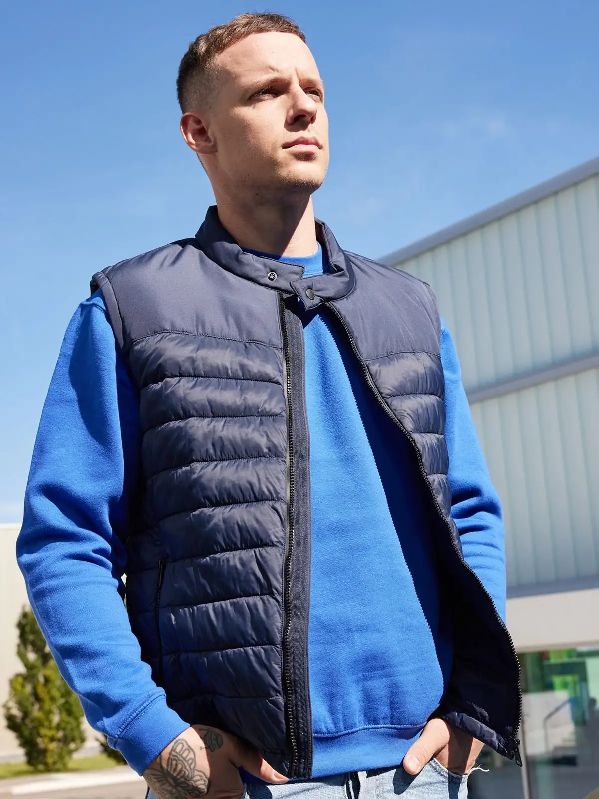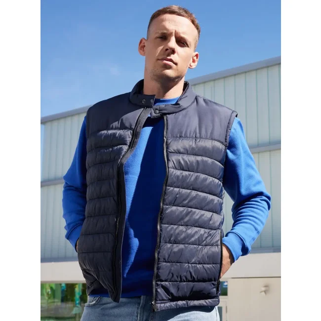 100% poliestere (riciclato). Pratico materiale in poliestere riciclato, idrorepellente e antimacchia grazie al BIONIC-FINISH®ECO, imbottitura antifreddo sorona®AURA, non trapuntato nella parte anteriore e posteriore per una facile stampa o ricamo, zip a tutta lunghezza, collo alto con bottone a pressione, 2 tasche laterali con zip, 1 tasca interna con zip, zip: YKK