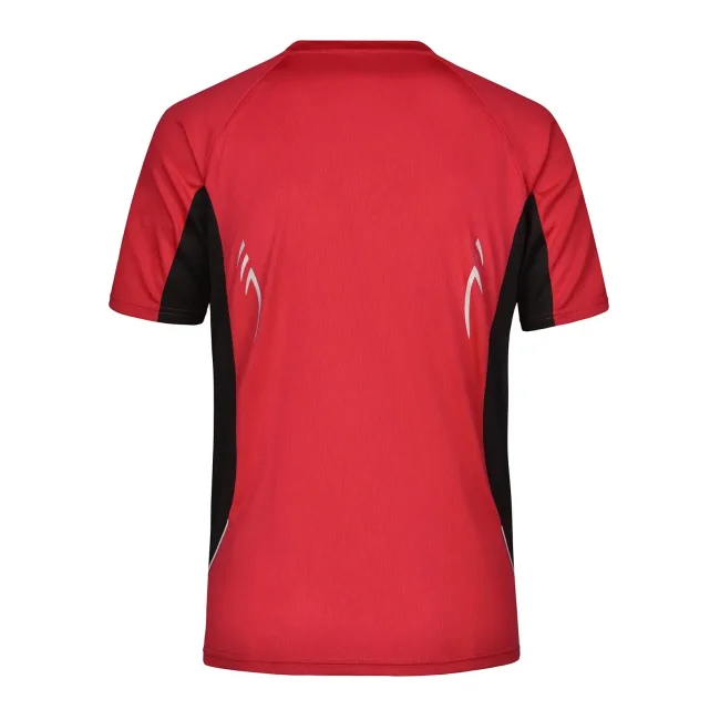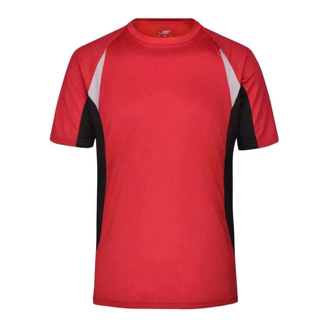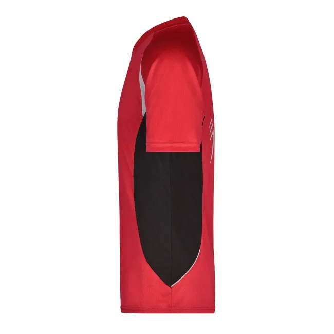 100% poliestere. T-shirt running maniche corte raglan, traspirante, regola l'umidità, asciugatura rapida, inserti di colore contrastante, bordini e transfer catarifrangenti, struttura con cuciture laterali.