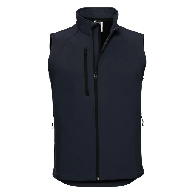 92% poliestere, 8% elastane. Giacca smanicata a 3 strati in softshell, traspirante, resistente a vento e acqua. Tasche laterali e sul torace con rivestimento interno. Lavabile a 40°C (non usare ammorbidente).